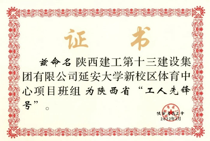 近日,陜西省總工會下發(fā)《關(guān)于為“十四運會和殘?zhí)貖W會”作出突出貢獻的集體和個人授予陜西省五一勞動獎和陜西省工人先鋒號的決定》,陜建十三建集團延安大學(xué)新校區(qū)體育中心項目班組榮獲陜西省“工人先鋒號”稱號。